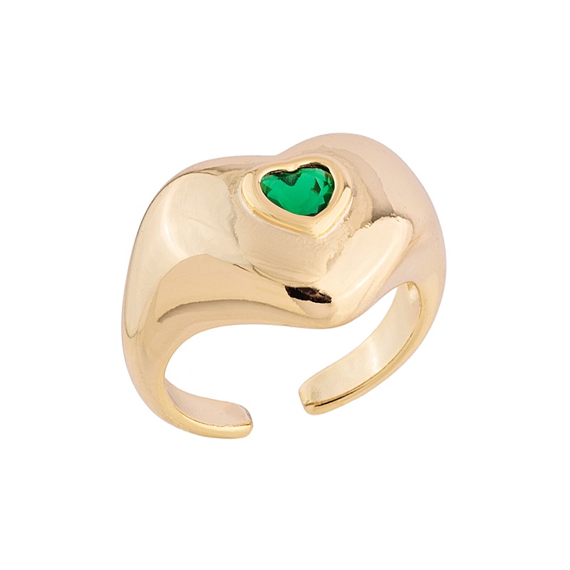 O Anel Cupid possui um design robusto e para realçar ainda mais a sua beleza, tem um mini coração na cor verde escuro.