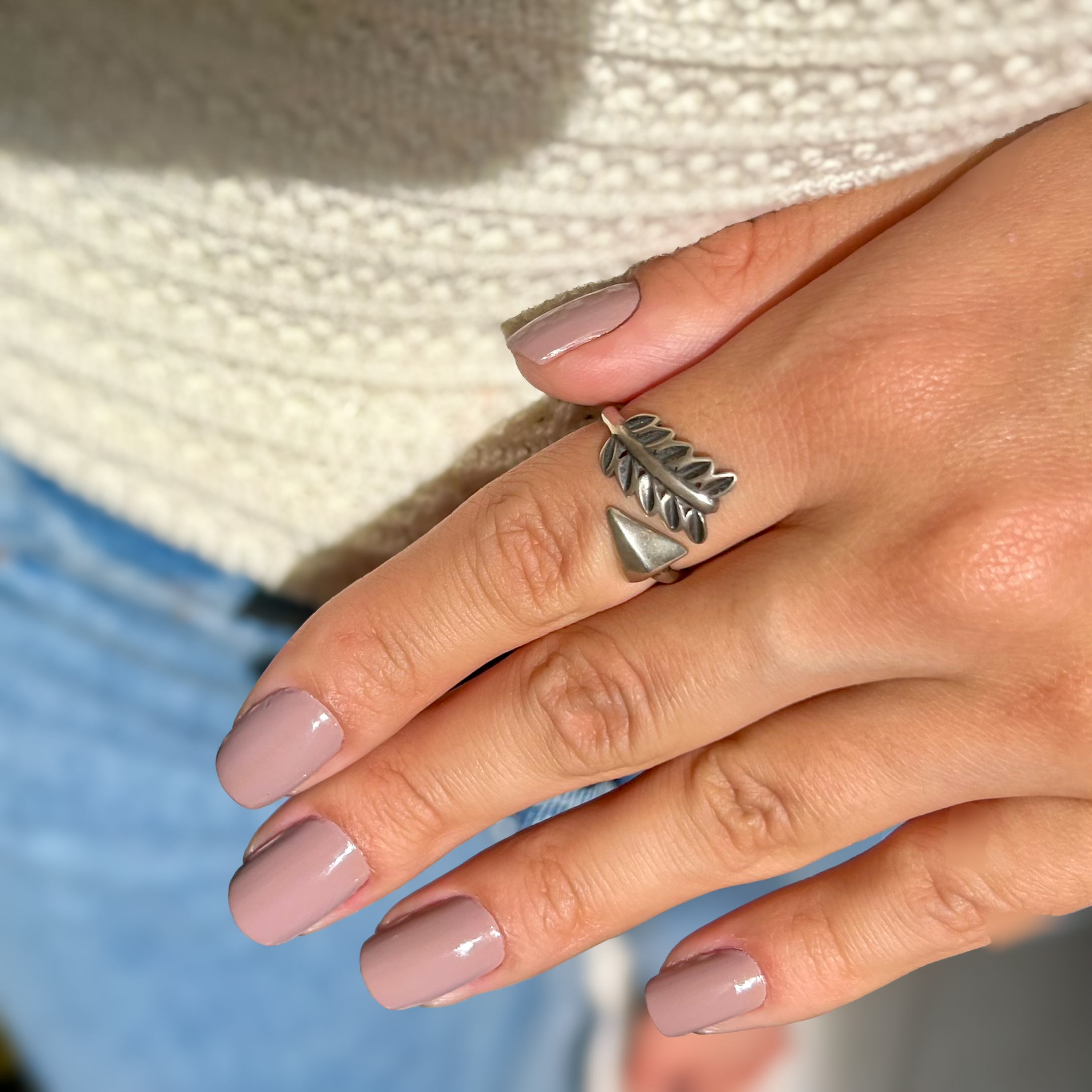 O Anel Lisa confeccionado em Prata 925 envelhecido, estilo prata Bali, possui formato de uma seta e ramos, com tamanho regulável, é possível ajustar de acordo com o tamanho do seu dedo.
