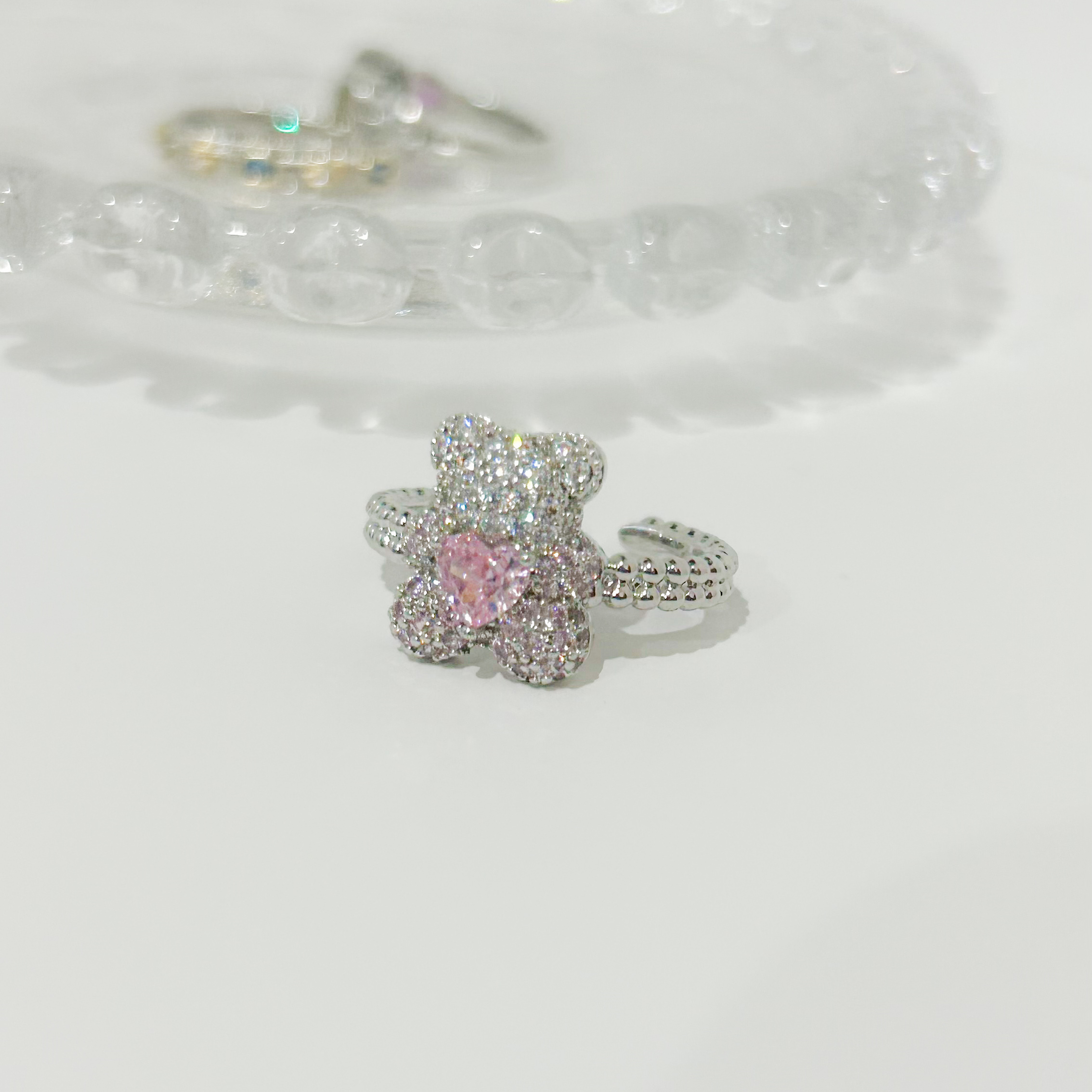 O anel com design de urso é fofo e super delicado.