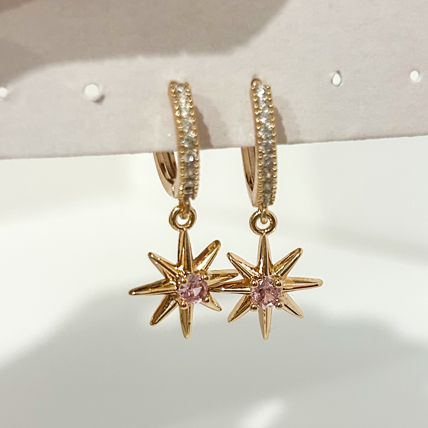 A junção da estrela com a zircônia rosa claro traz suavidade, enquanto os detalhes em zircônia branca na argola adicionam um brilho sutil.