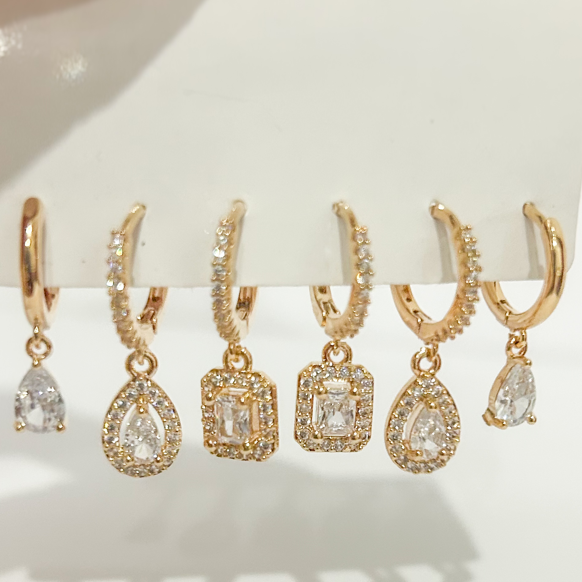 O Trio Shine confere sofisticação e muito brilho, por conta das zircônias brancas presentes tanto na argola quanto nos pingentes.